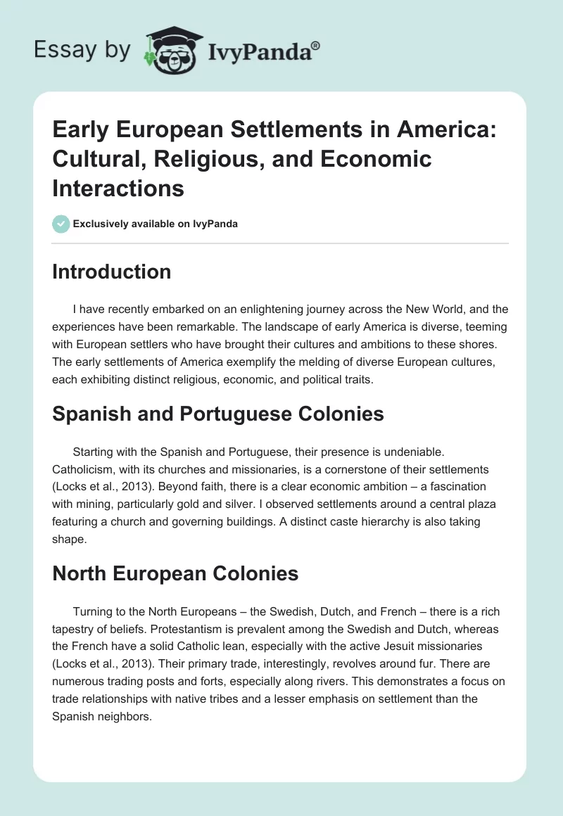 I have recently embarked on an enlightening journey across the New World, and the experiences have been remarkable. The landscape of early America is diverse, teeming with European settlers who have brought their cultures and ambitions to these shores. The early settlements of America exemplify the melding of diverse European cultures, each exhibiting distinct religious, economic, and political traits.