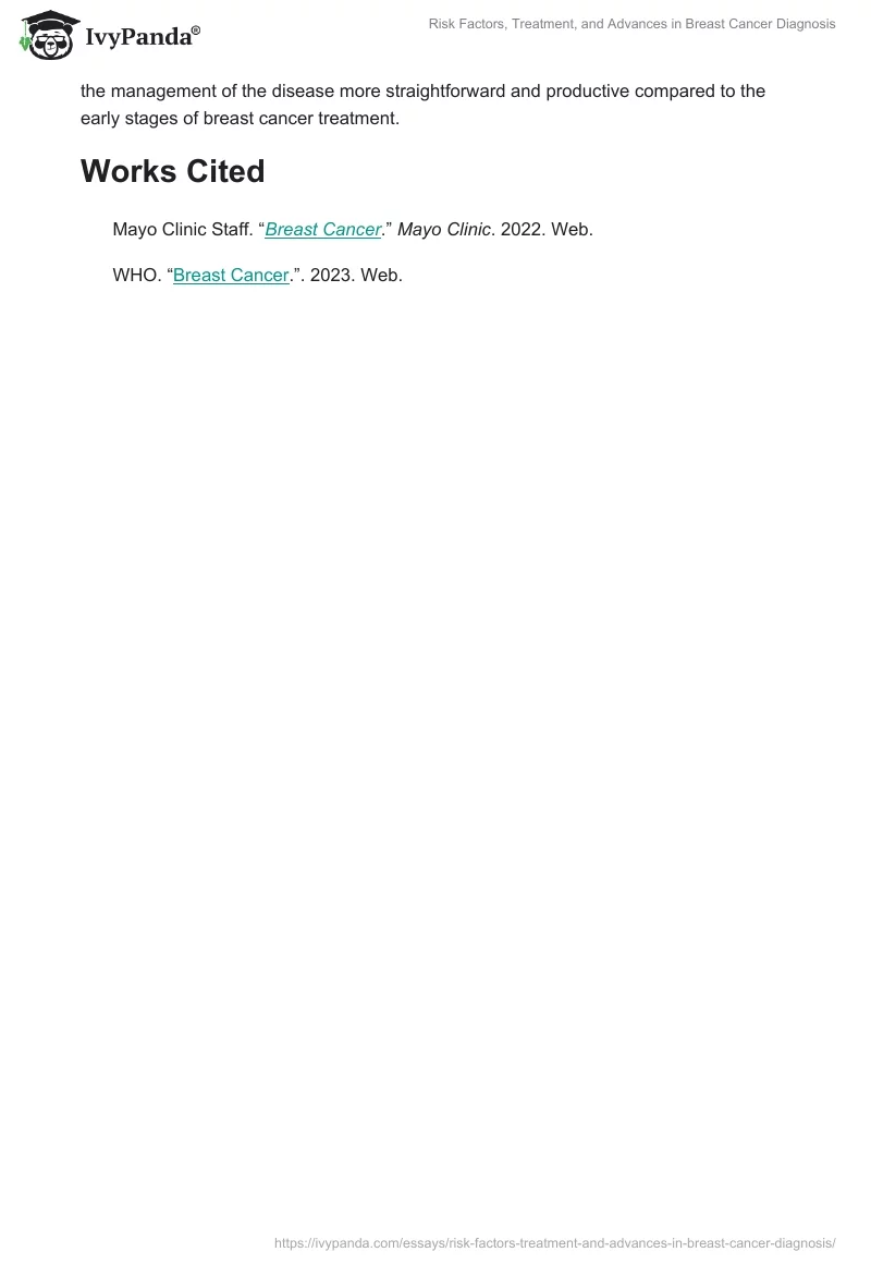 Mayo Clinic Staff. “Breast Cancer.” Mayo Clinic. 2022. Web.